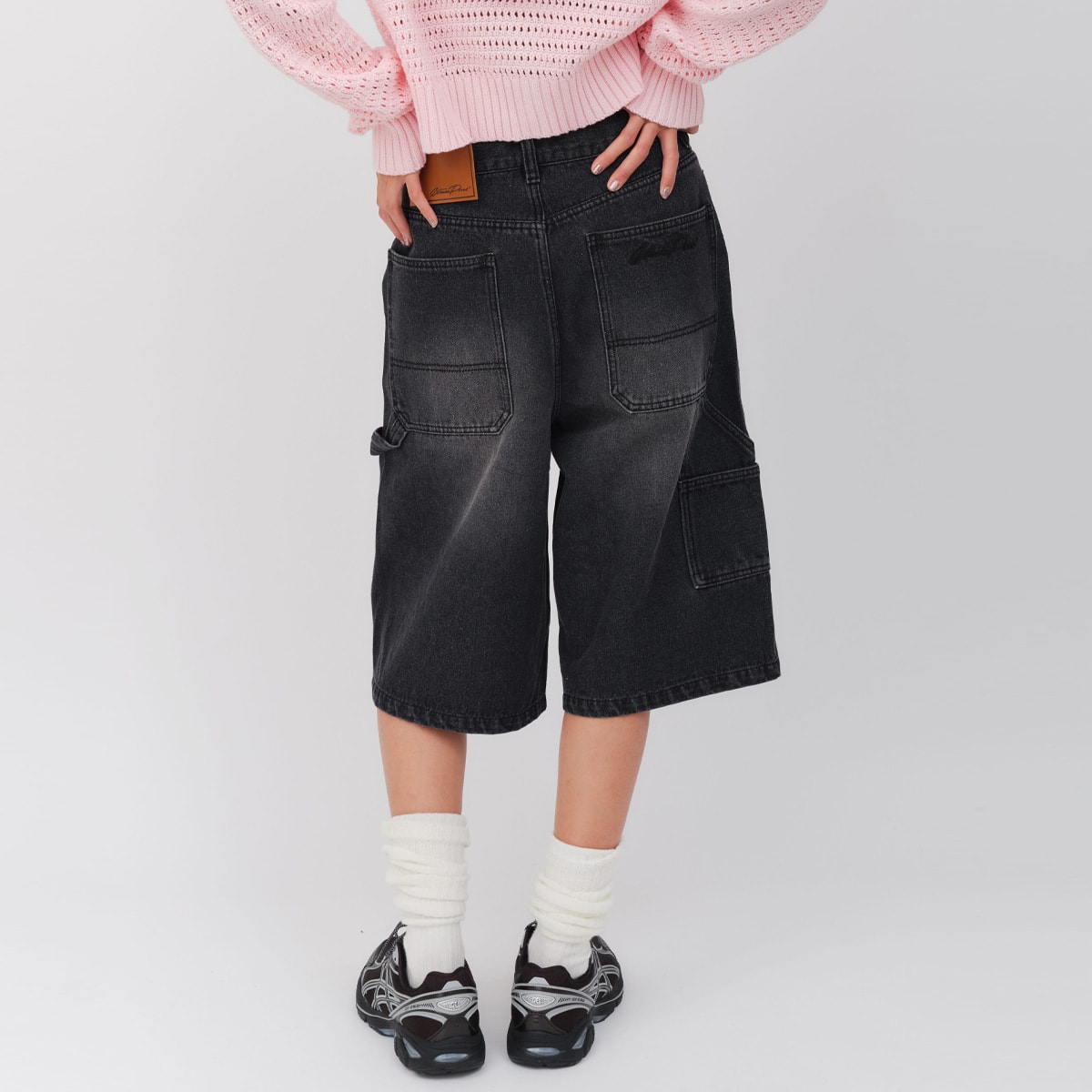 atmos pink Rhinestone Painter Half Pants BLACK